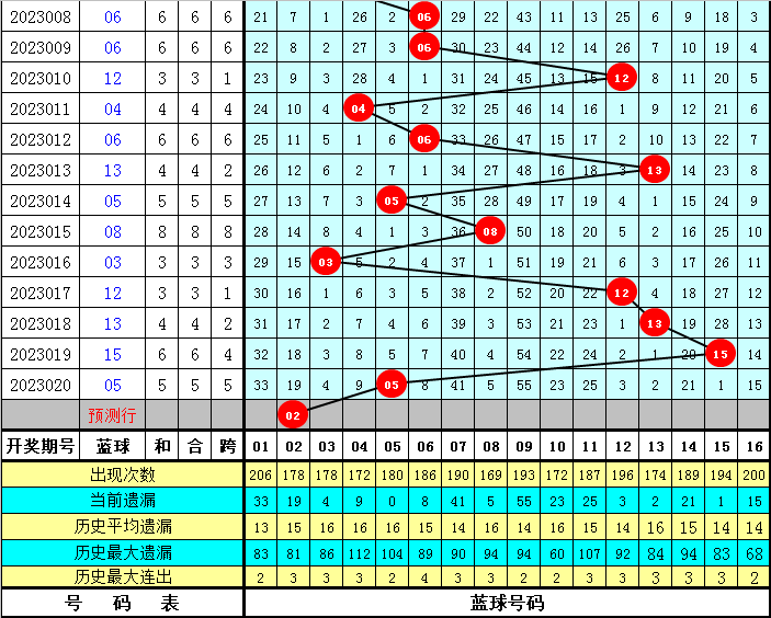 在最近10期开奖中,该区蓝球出现了2次,蓝球号码出现比例较低,近期精通该区蓝球回补。