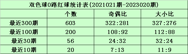 笼统分析,双色球第2023021期红球012路比参考:3:1:2。