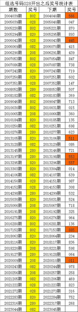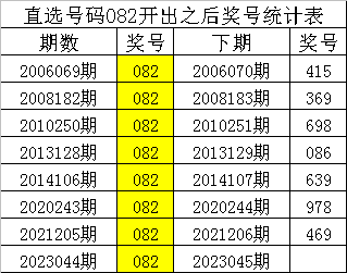 从上表统计不错看出,直选号码082开出之后,其下期奖号: