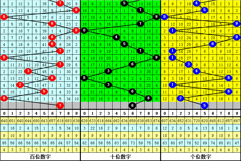 6.下期奖号0-9号码频次分裂为:号码0、1、2、3开出4次;5、6、7开出3次;8、9开出2次;4开出1次。本期独胆参考7。
